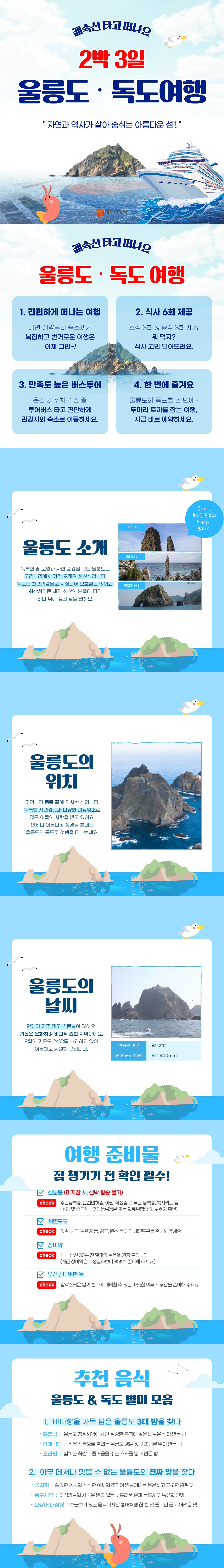 * 울릉도 직원은 가이드가 아니고 섬 여행 특성상 숙소, 식사, 차량, 여행 코스 등을 안내해주는 직원입니다.