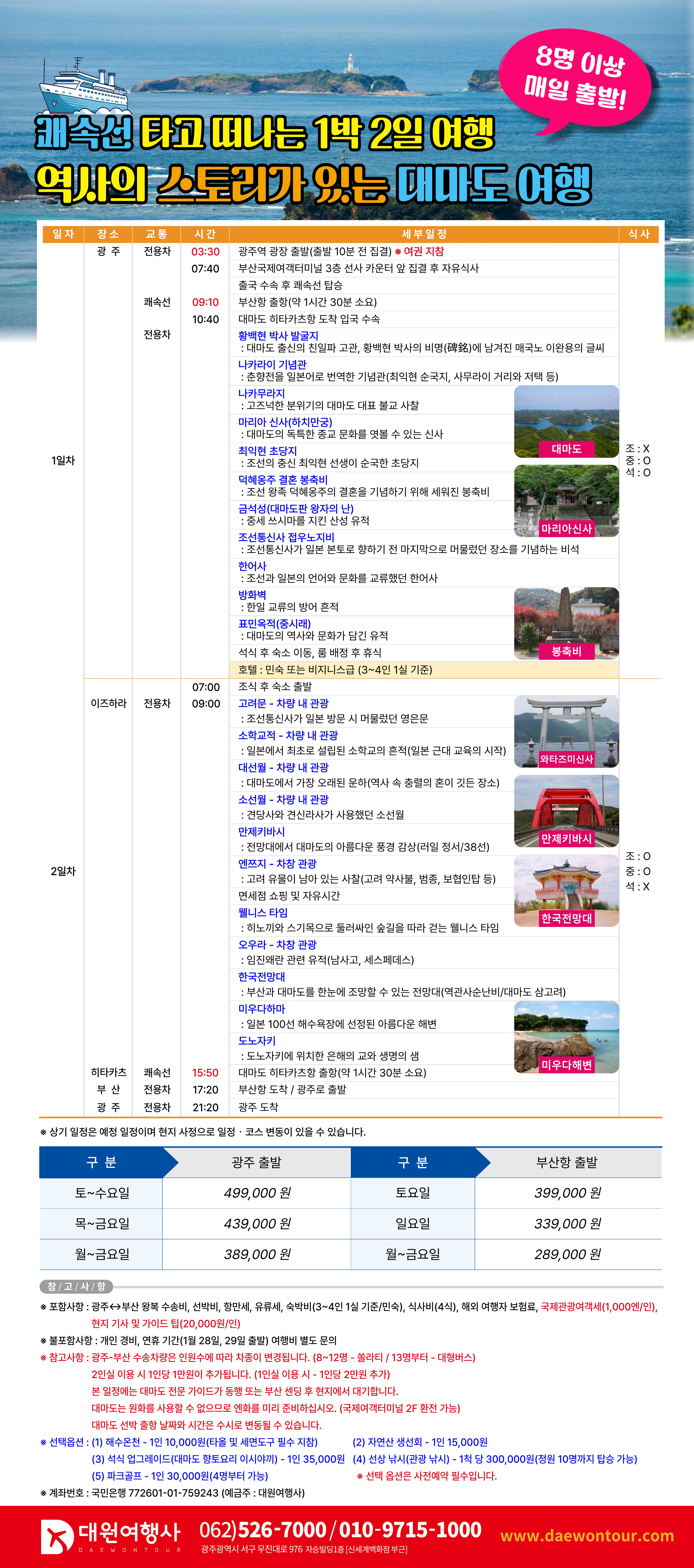 * 본 일정에는 대마도 전문 가이드가 동행 또는 부산 센딩 후 현지에서 대기합니다.